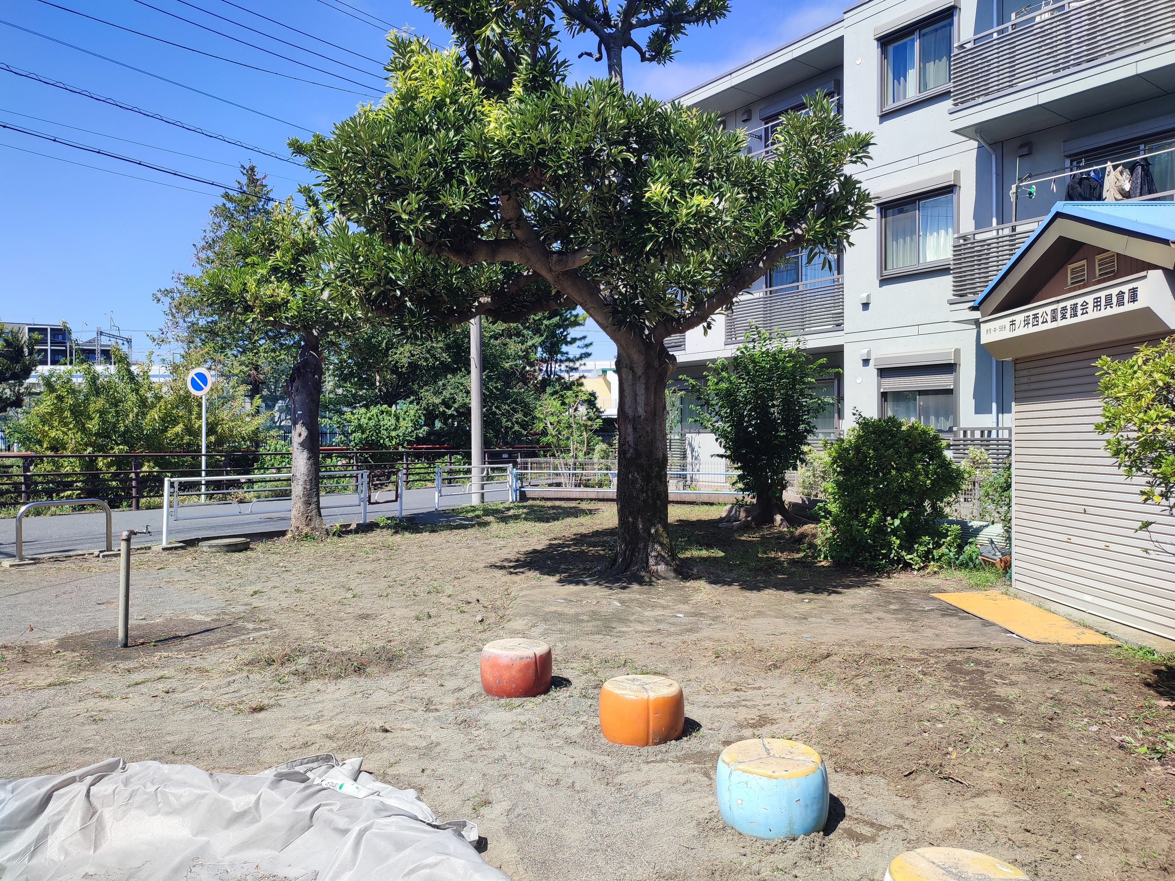 市ノ坪上町会では、東住吉小学校の藤棚門付近、二ヶ領用水の横にある「市ノ坪西公園」の管理運営を担っています。地域の皆さまに心地よく利用していただけるよう、一環として公園の清掃や草抜きを定期的に実施しています。